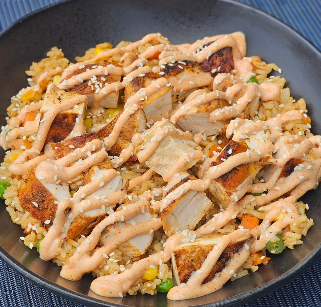 W/ Chopped Grilled Chicken Breast, Veggie Mix Rice & Housemade OMG Sauce